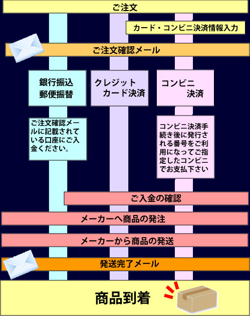 ※文書扱いの郵便振替は確認に日数を要しますので(通常振替で4日程度)ご了承ください。お急ぎの場合は上記銀行振り込みか代引きをご利用ください。